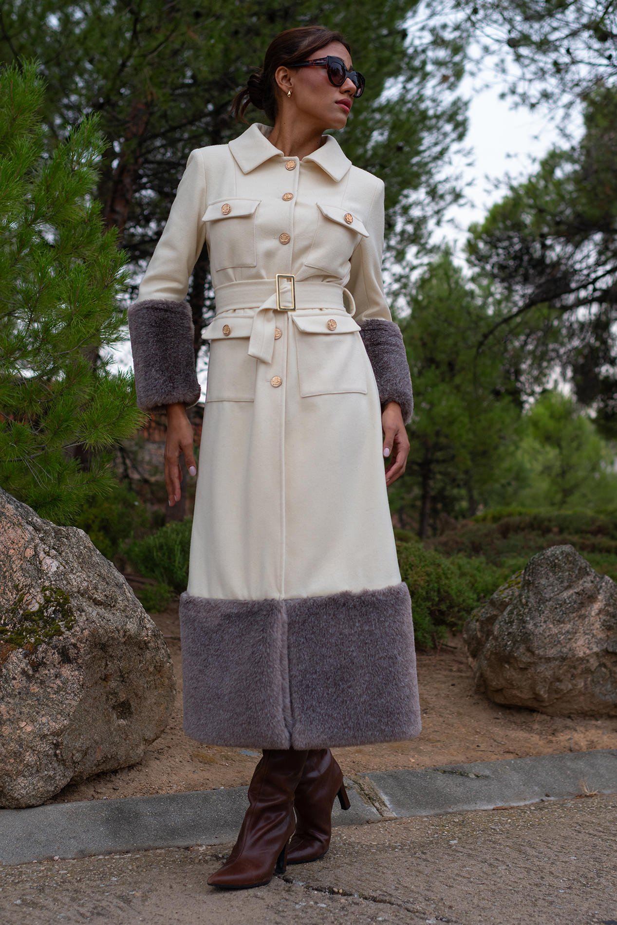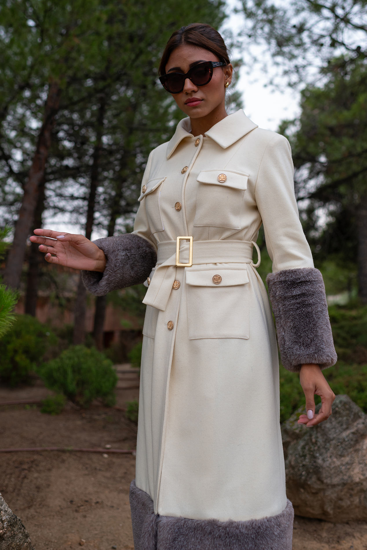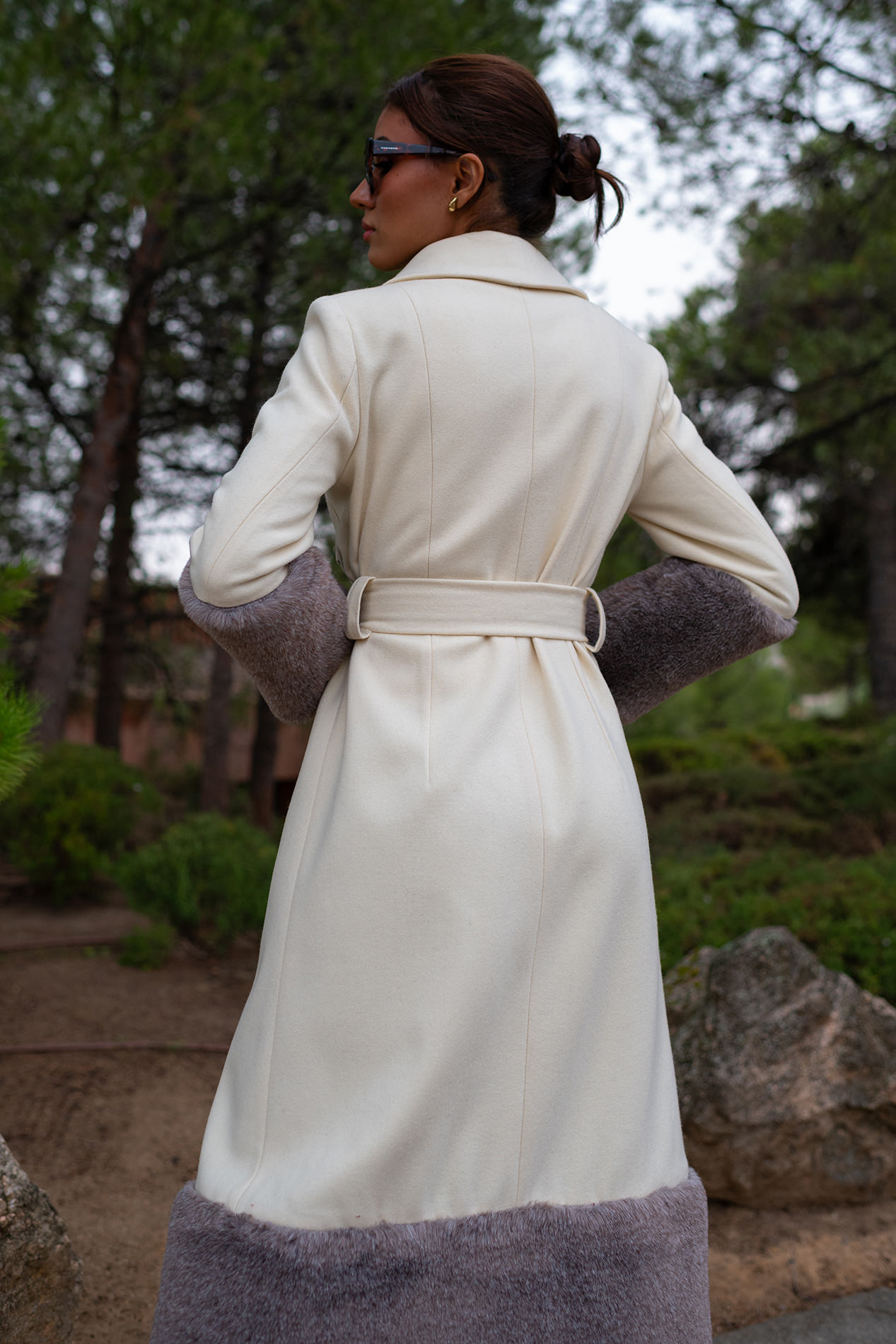Ribeteado en mangas y bajo por una gran piel color topo que la aporta un aire sofisticado inigualable convirtiéndolo en un abrigo único.