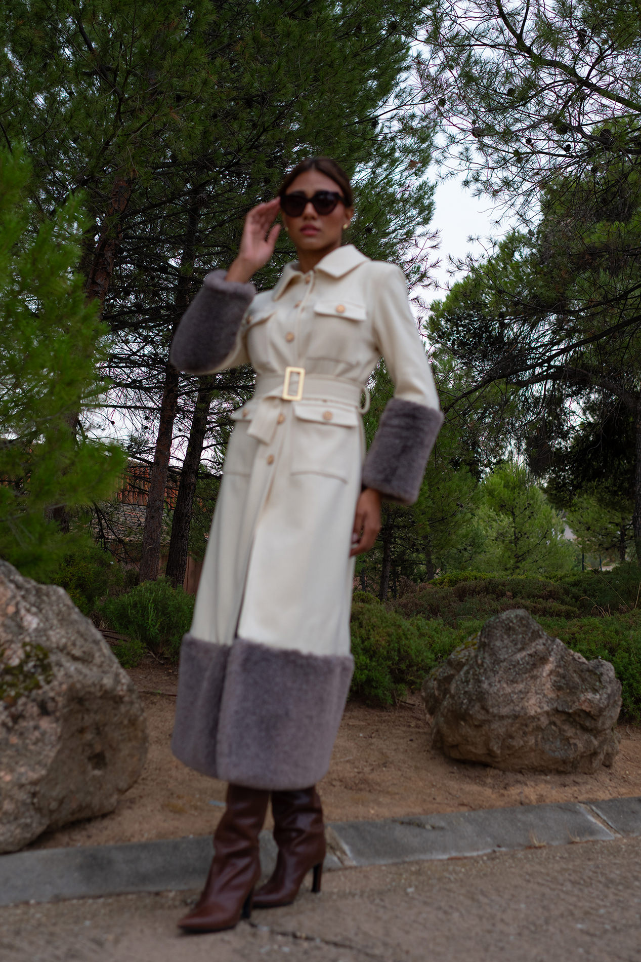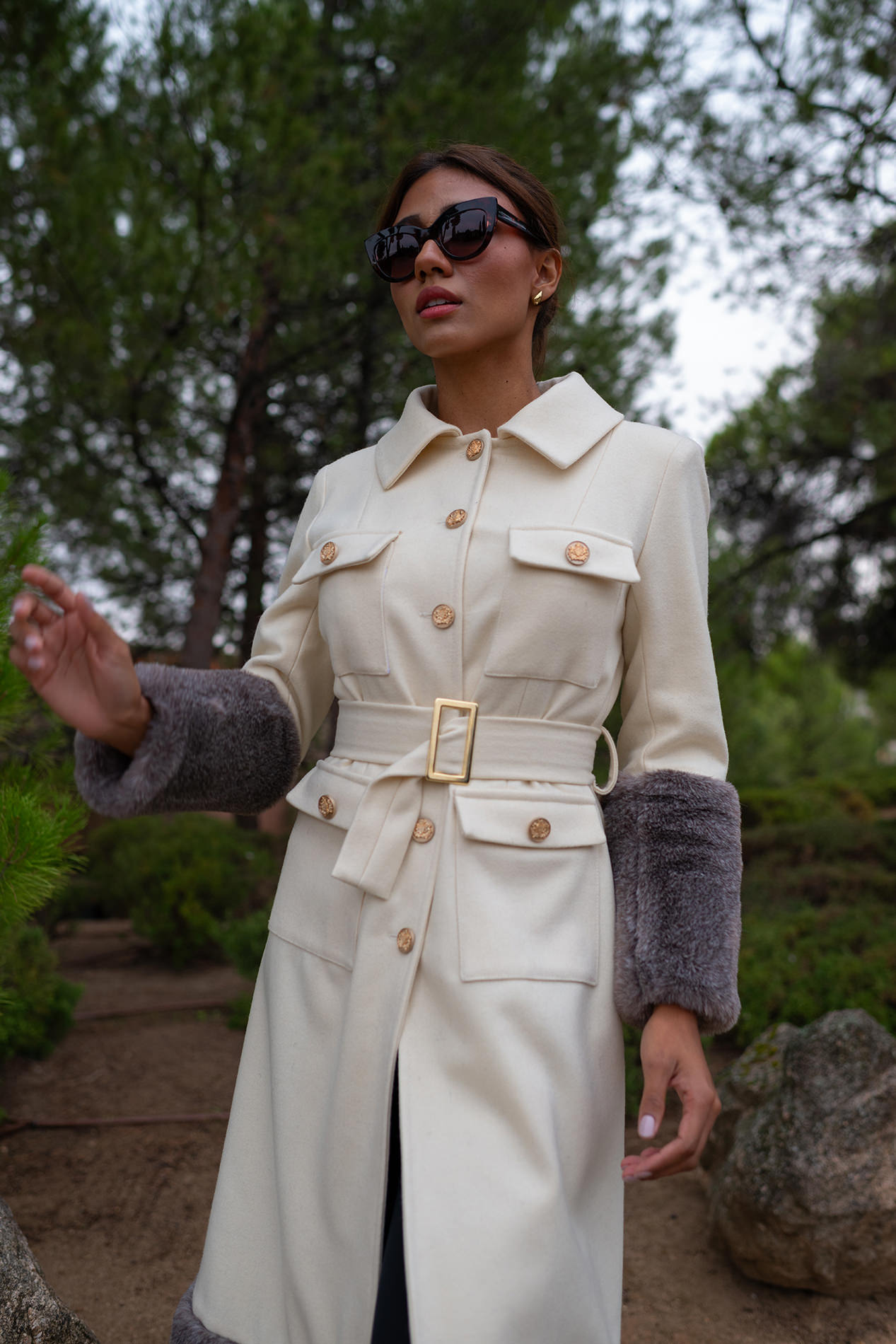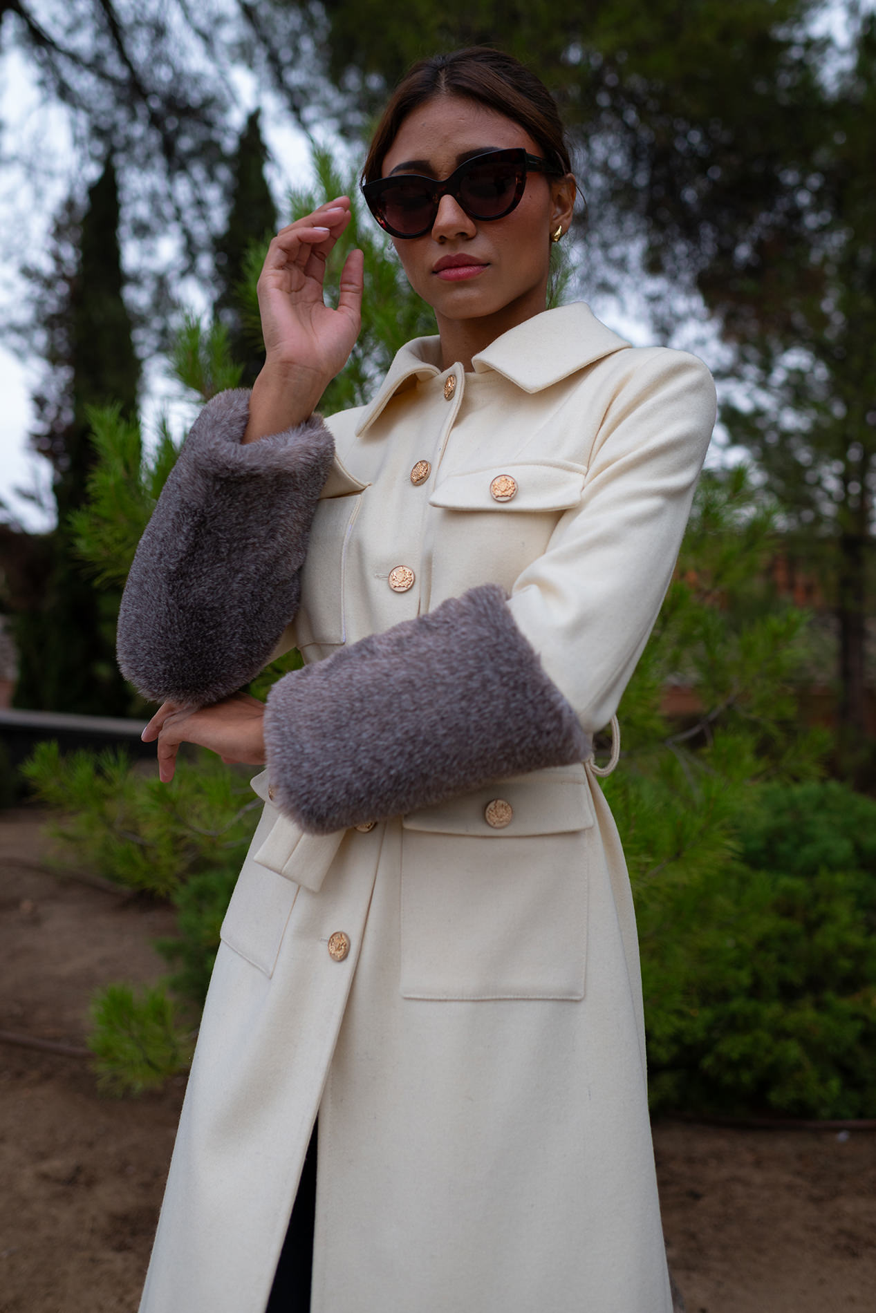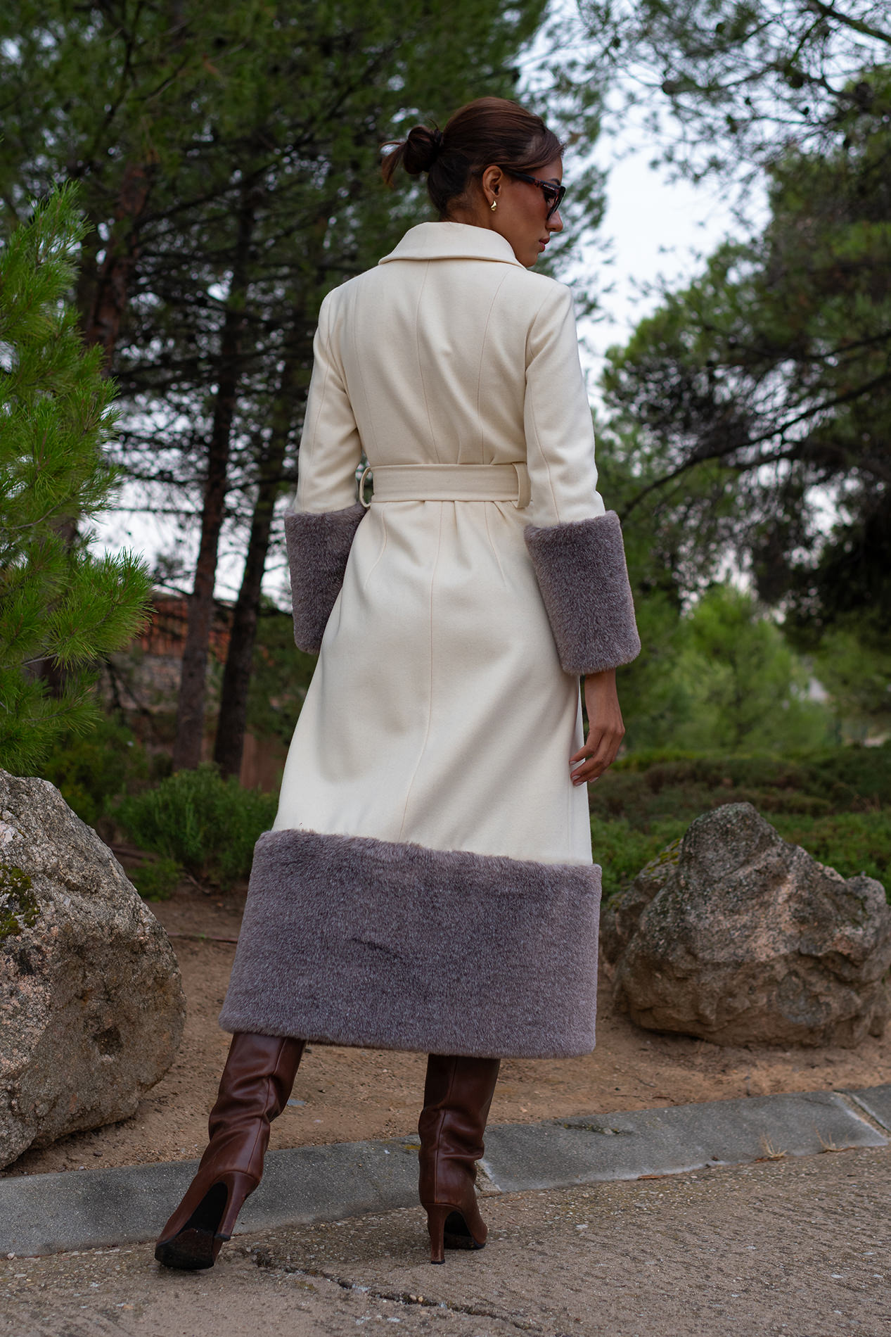 Ribeteado en mangas y bajo por una gran piel color topo que la aporta un aire sofisticado inigualable convirtiéndolo en un abrigo único.