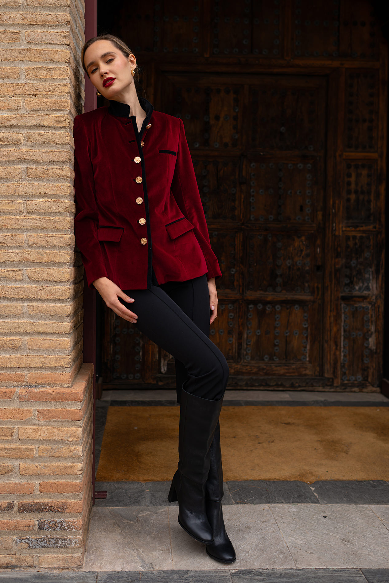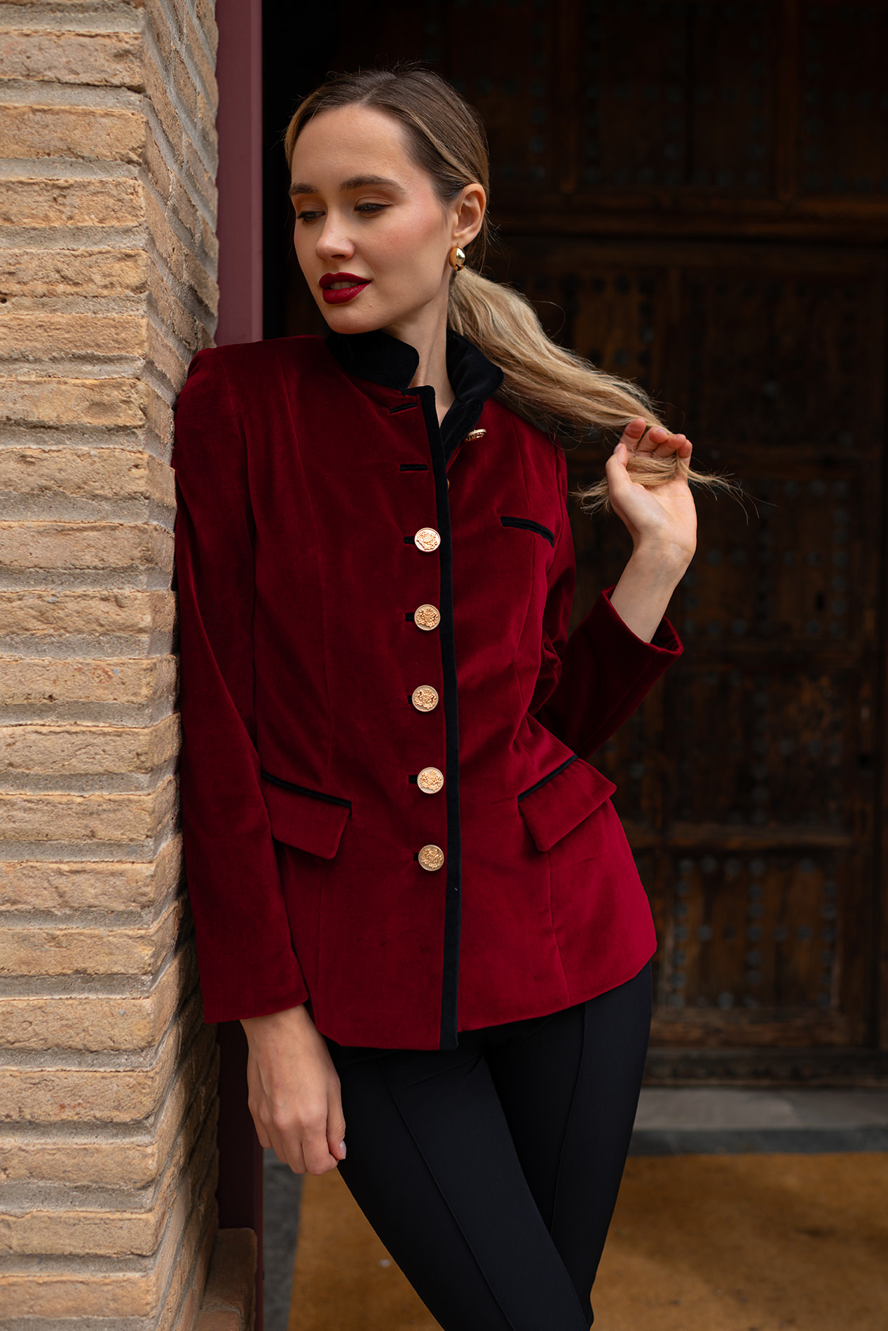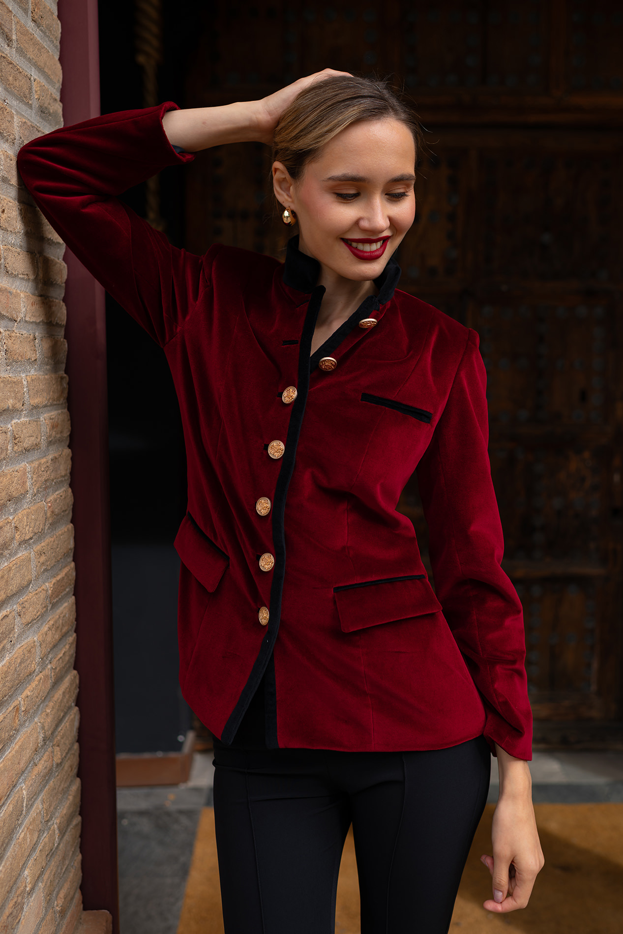 Blazer de impecable patrón realizada en terciopelo burdeos