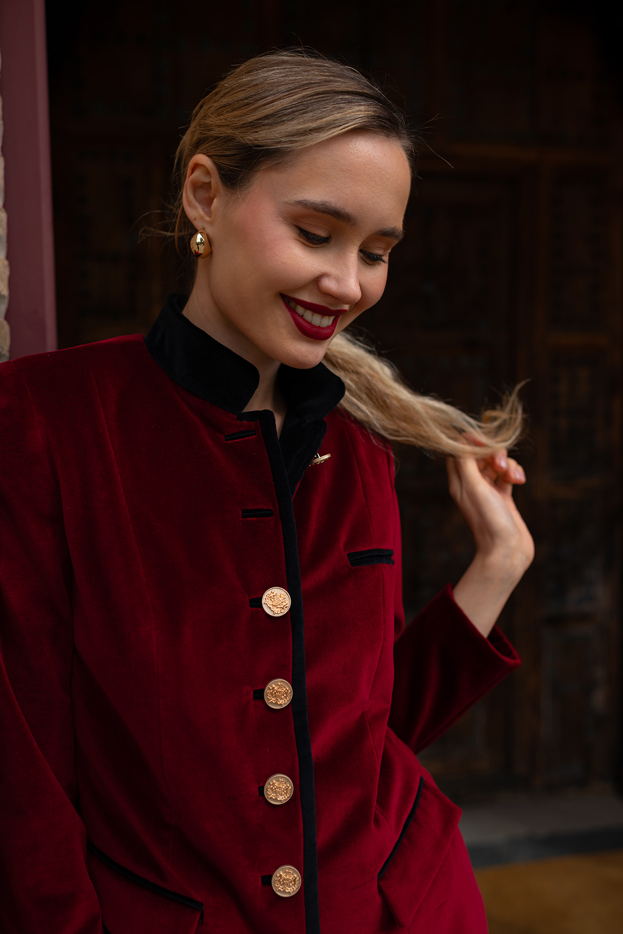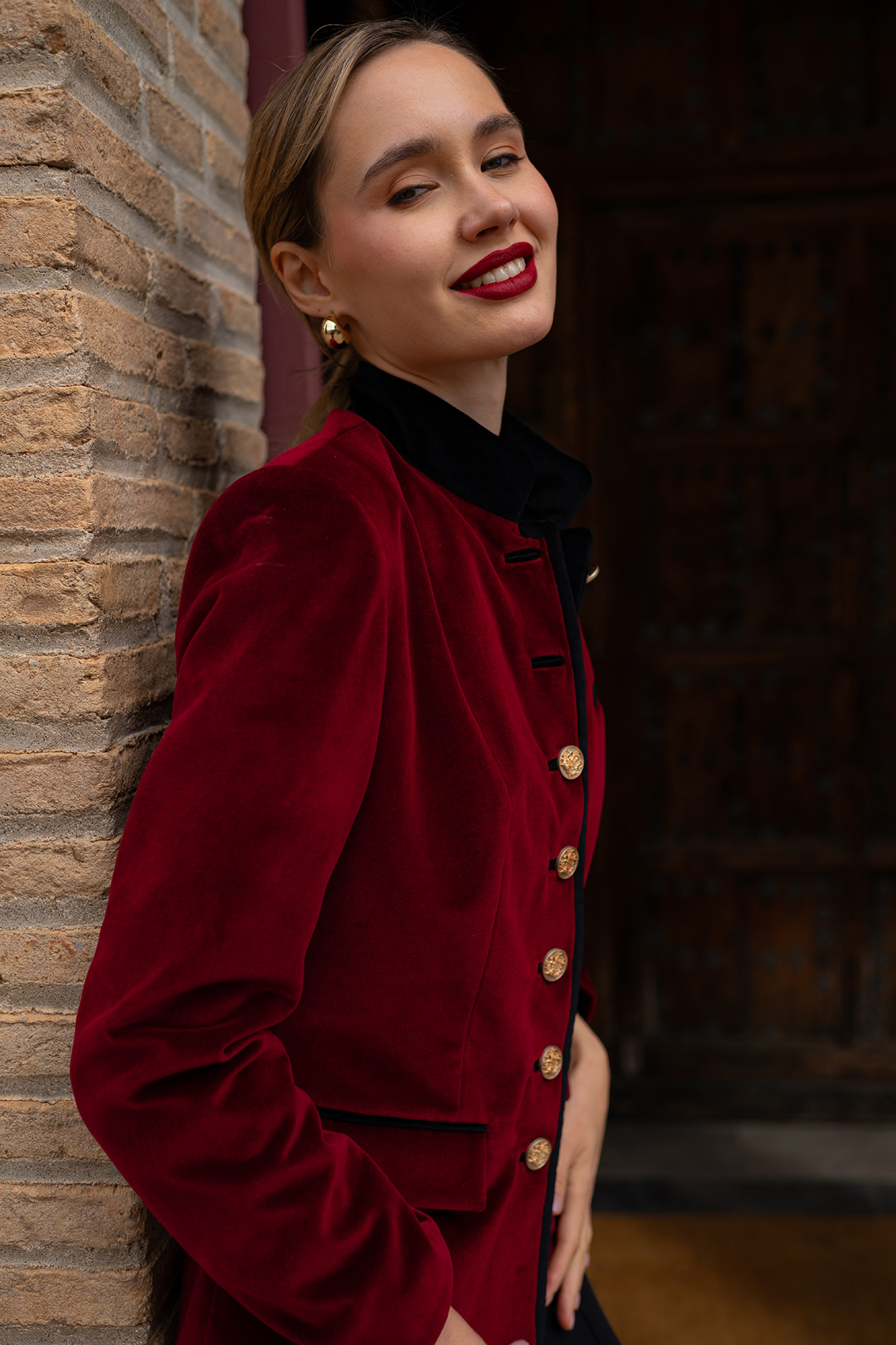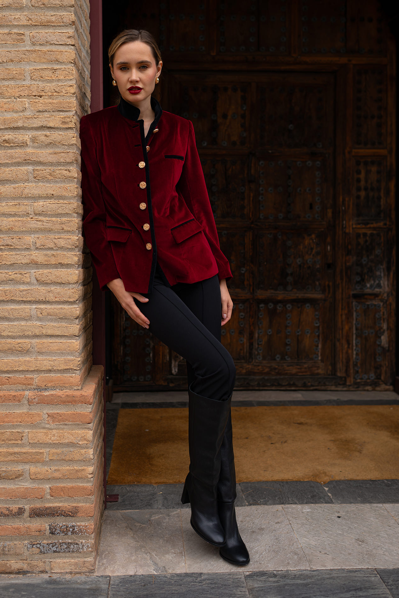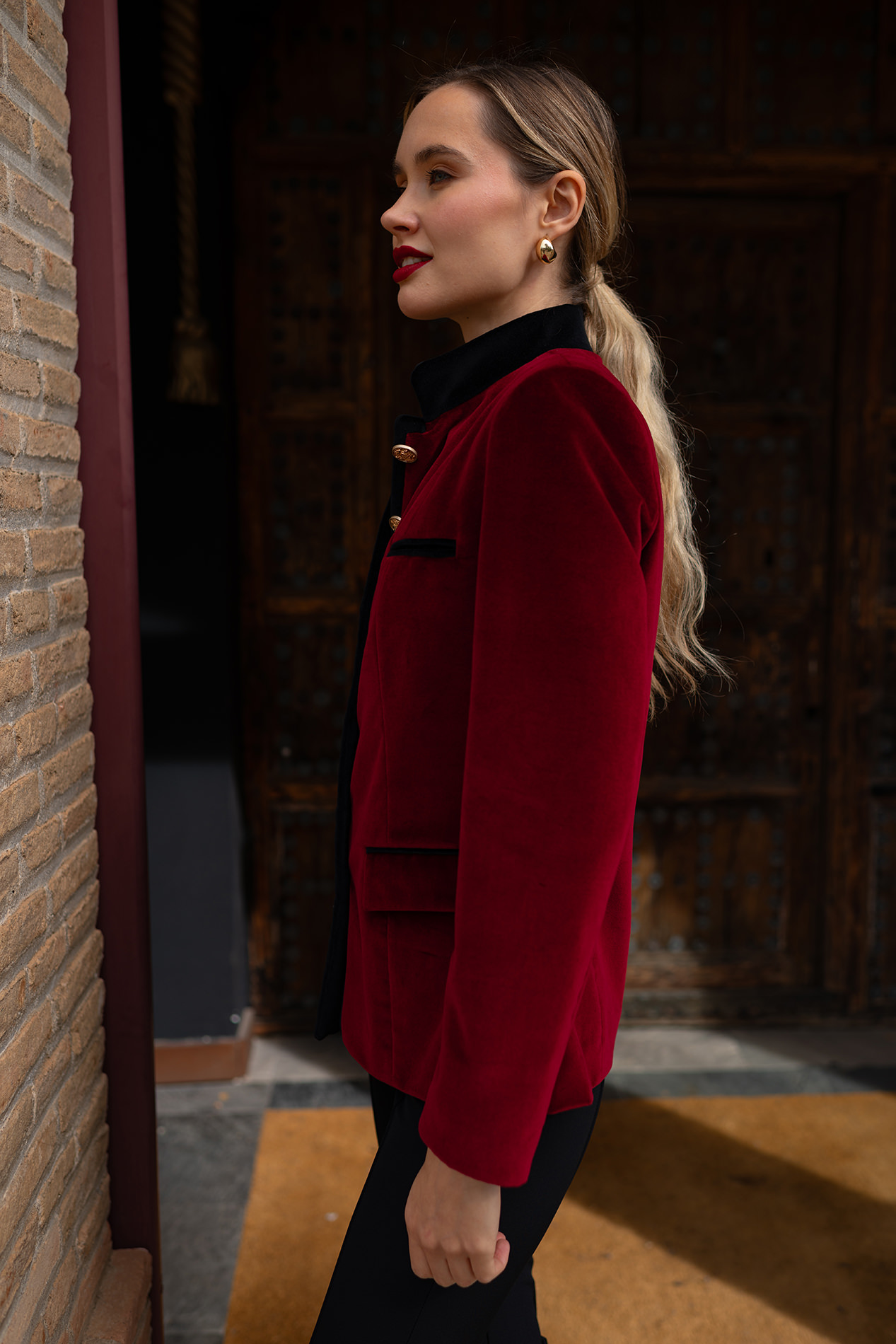 Blazer de impecable patrón realizada en terciopelo burdeos
