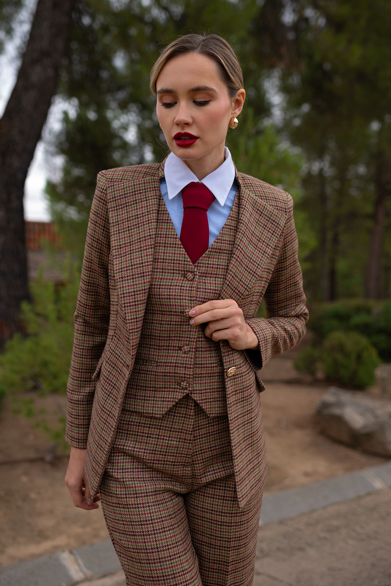 Chaleco en impecable patrón realizado en lana y cashmere de fabricación española lo que le proporciona un tacto suave y muy agradable,