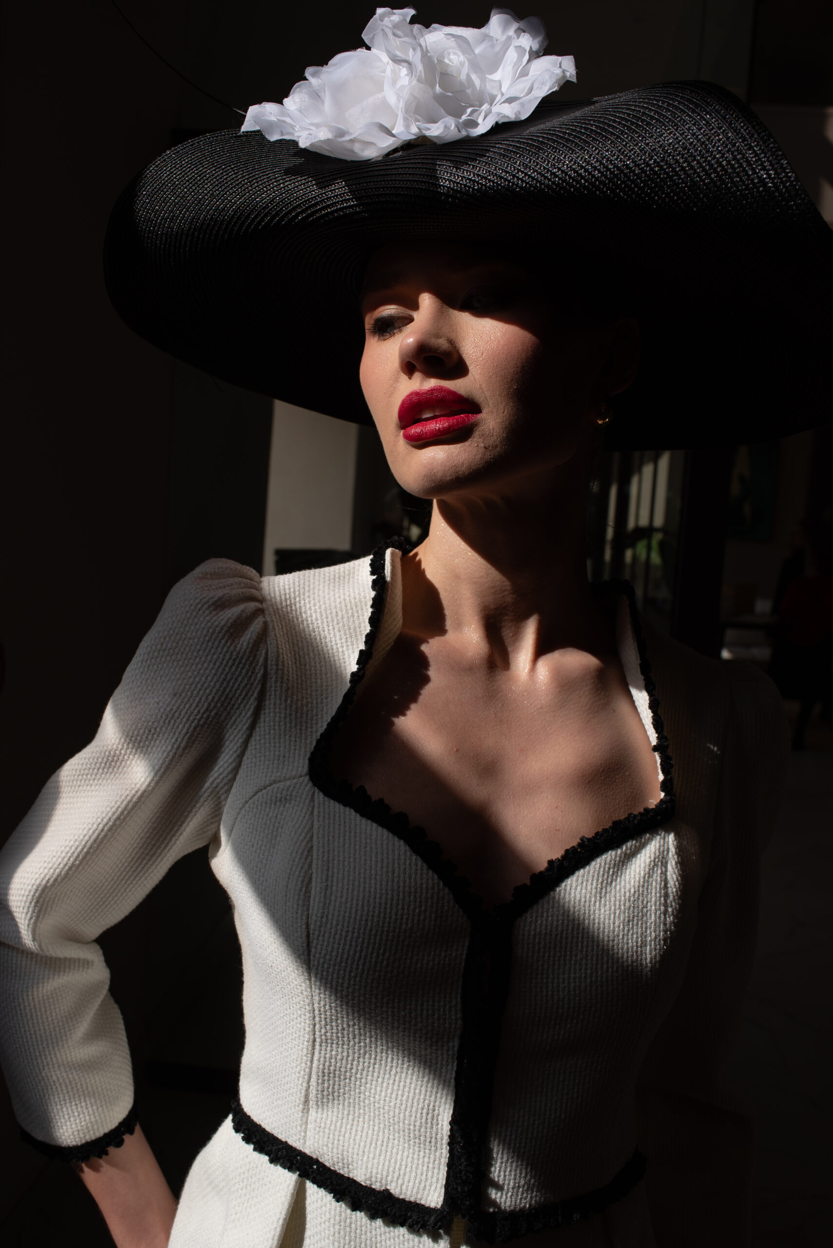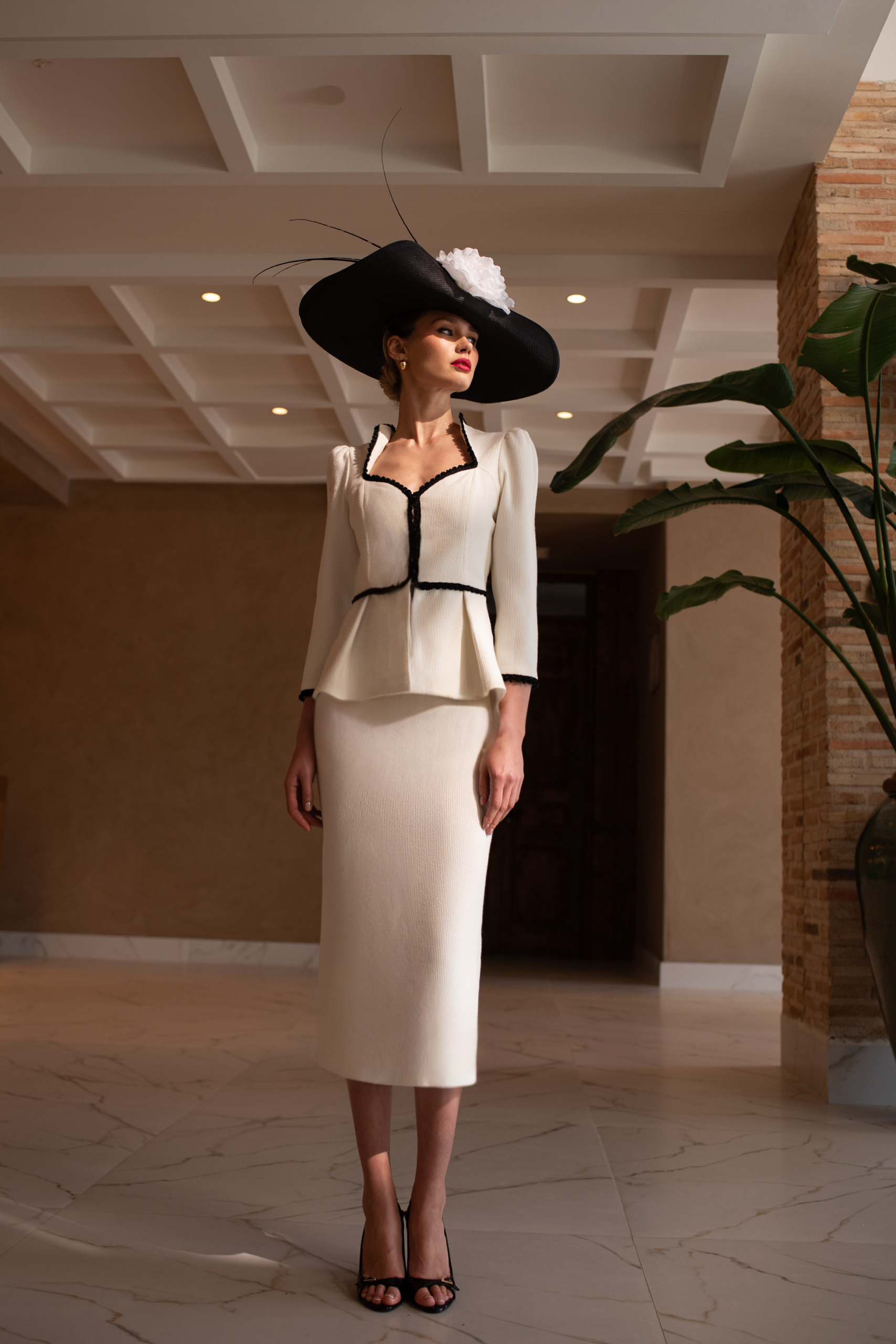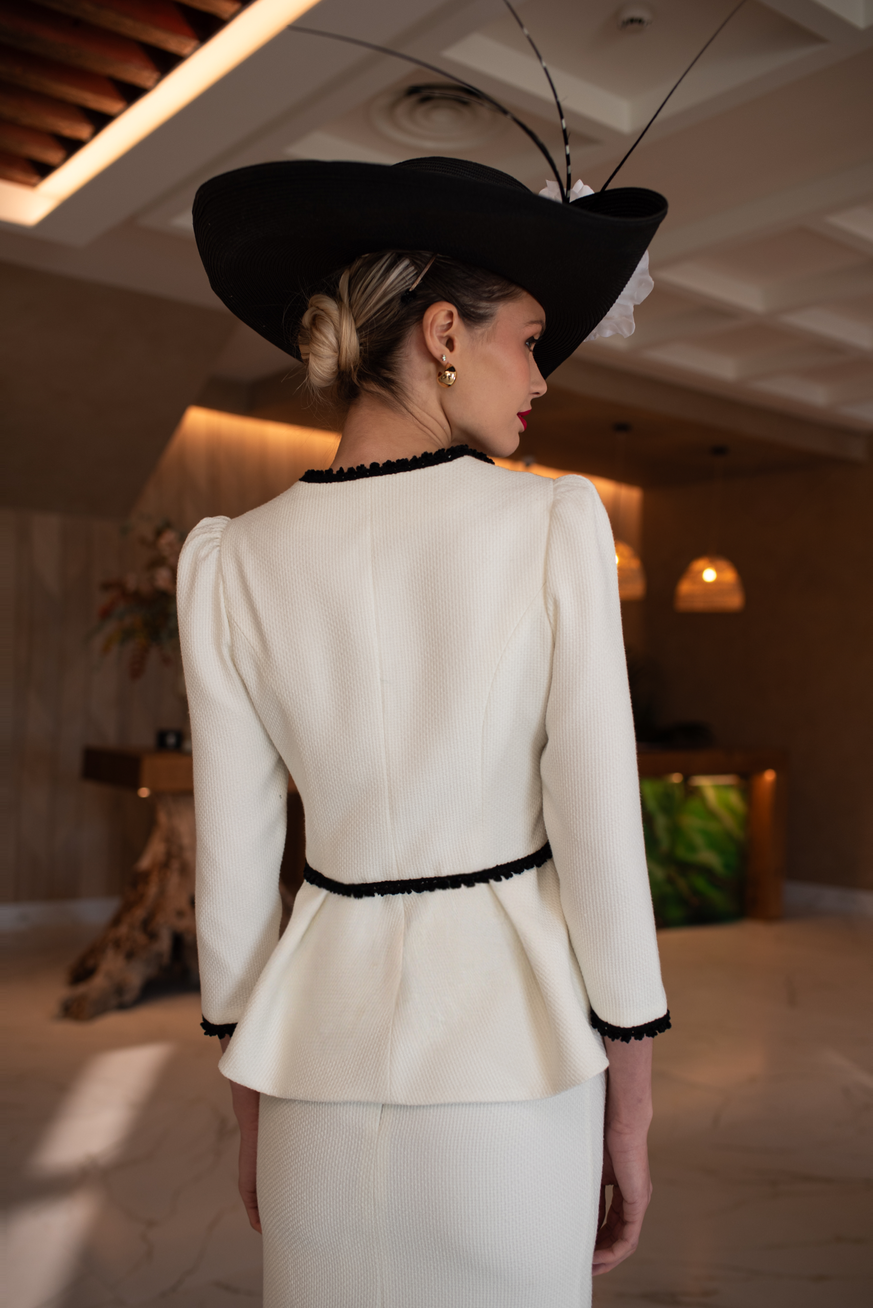 El conjunto KATE está realizada en una espectacular y original tejido blanco con gran estructura.
