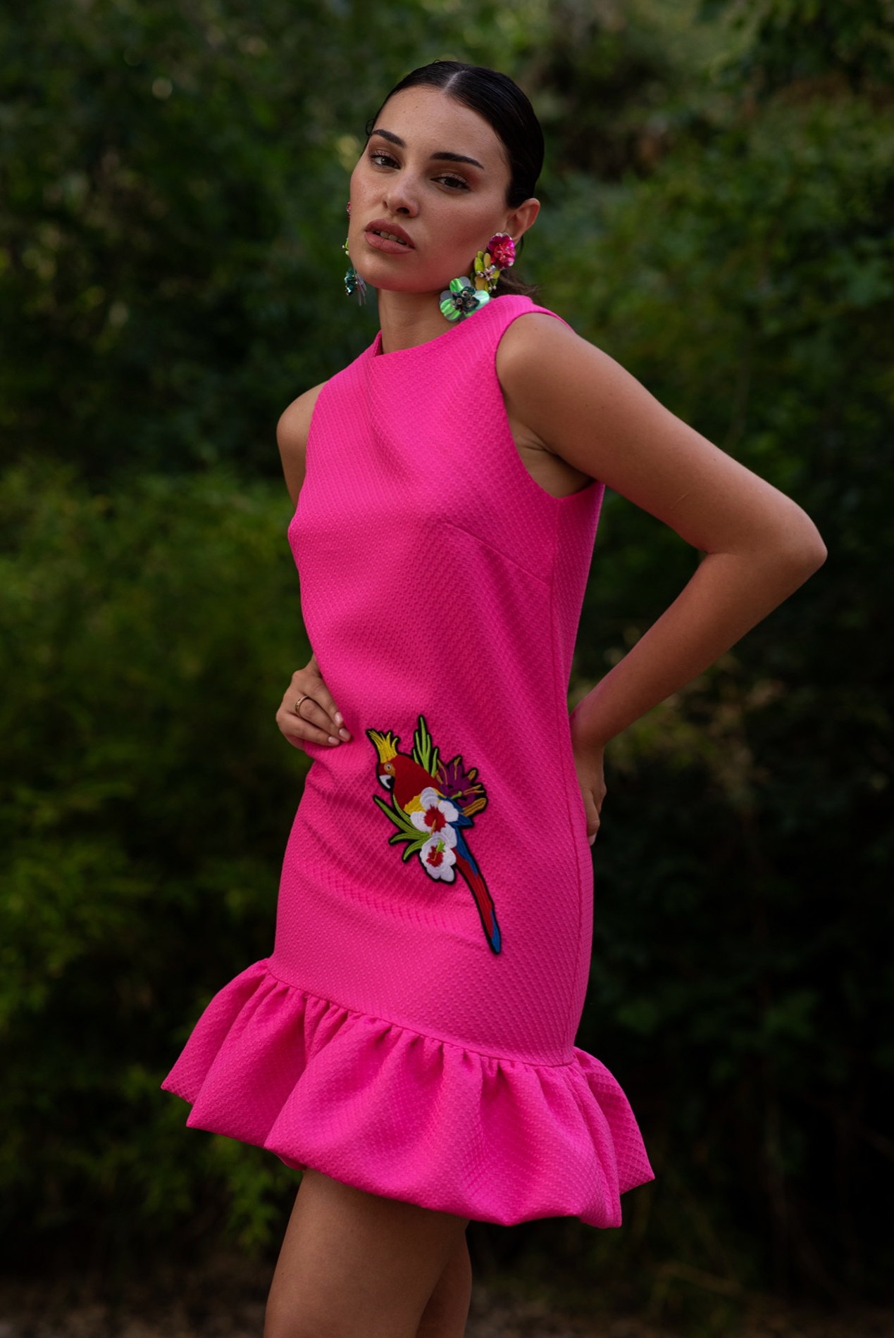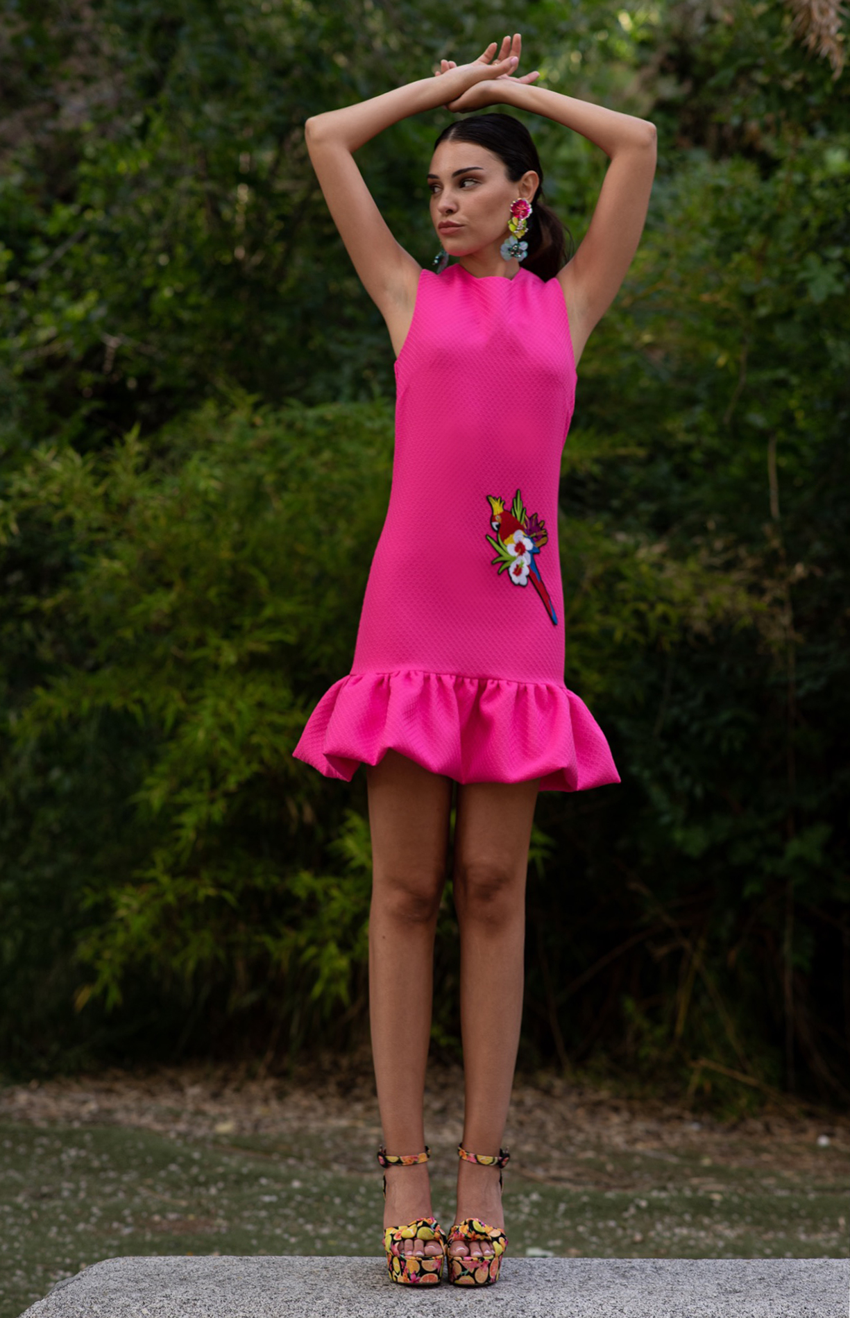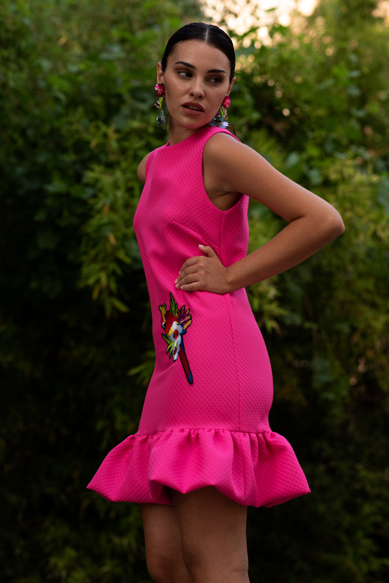 Vestido realizado en piqué de nido de abeja color fucsia.
